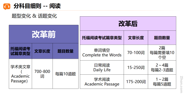 根据上海ETS托福全球体验日现场给到的回应,2026年托福改革前后对比关于阅读主要变化在于新增题型和文章篇幅有所缩短。